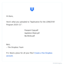 After the upload is completed, you will receive the following email from Dropbox. Please be sure to verify receipt of this email.