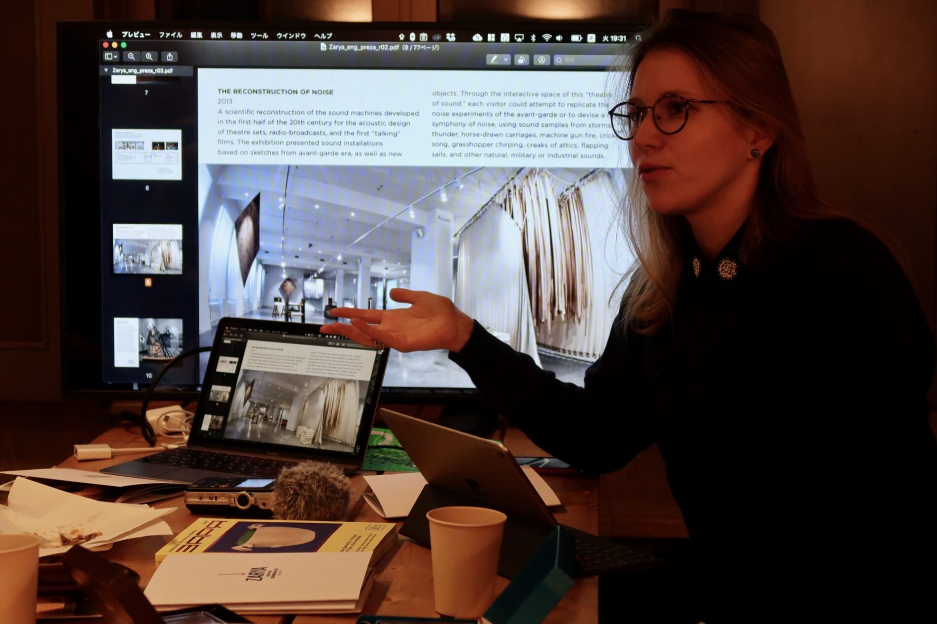 シリーズ「世界のアーティスト・イン・レジデンスから」は、様々なゲストを迎え世界各地のアーティスト・イン・レジデンスやそれを取り巻く状況をスタッフや来場者で共有する交流イベントです。今回は、ロシア最大のアルコール飲料メーカーBelugaが運営するアートスペース、ZARYA Center for Contemporary Artのレジデンスプログラムでチーフキュレーターを務めるアリサ・バグドナイトを迎えて、レクチャーを行いました。