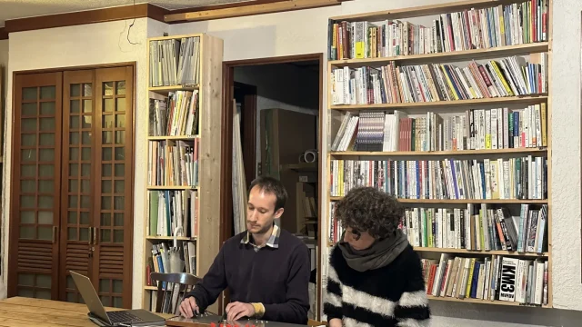 パスパルトゥー・デュオは、同じく5F・ラウンジにてオリジナルのシンセサイザーを用いた即興演奏のライブを行いました。