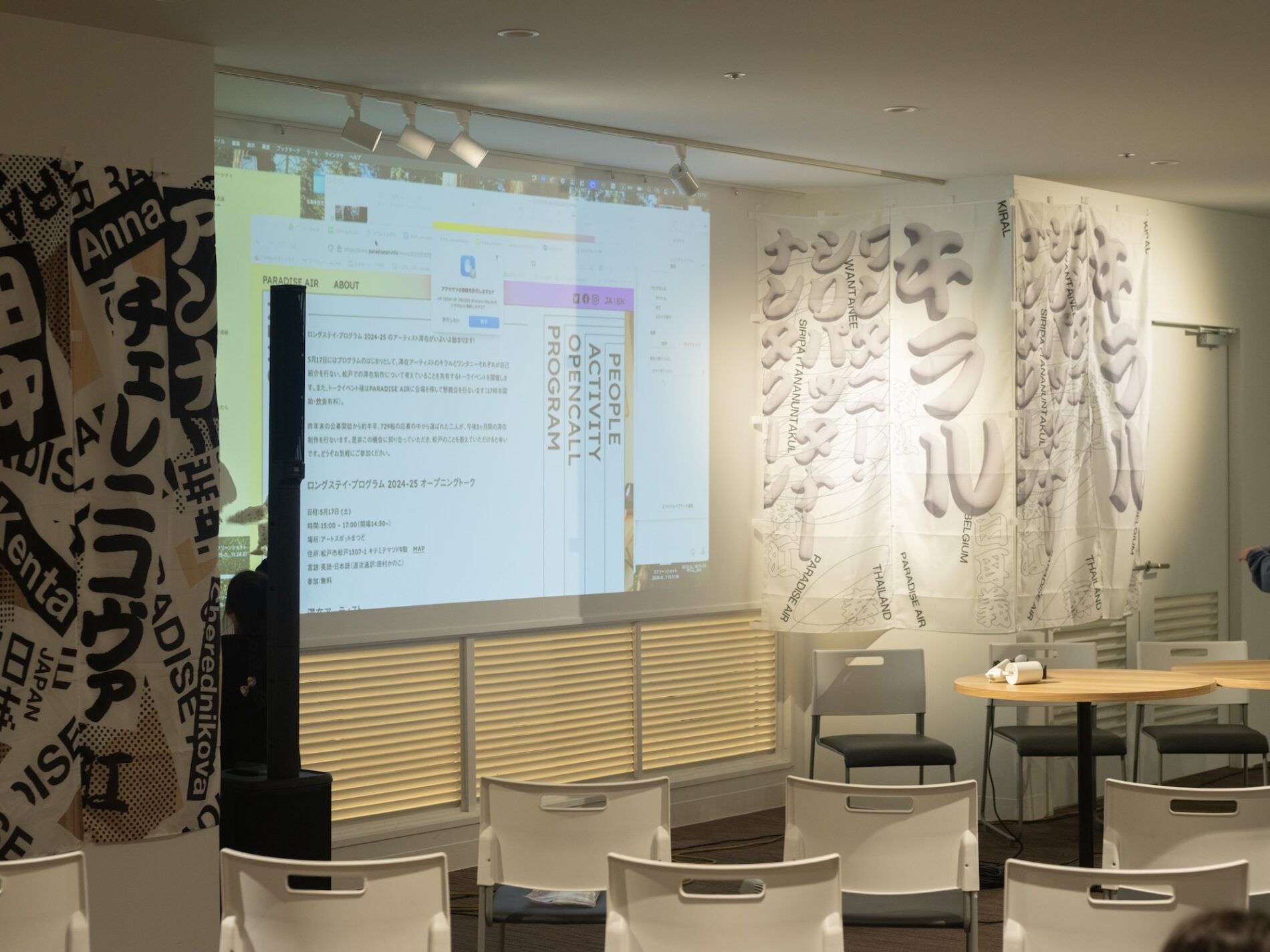 ロングステイ・プログラム 2024-25では、松戸での滞在生活が始まったキラルとワンタニーそれぞれが自己紹介を行ない、松戸での滞在制作について考えていることを共有するトークイベントを開催しました。二人が今回取り組むテーマについて、それぞれの興味や目標を紹介しました。