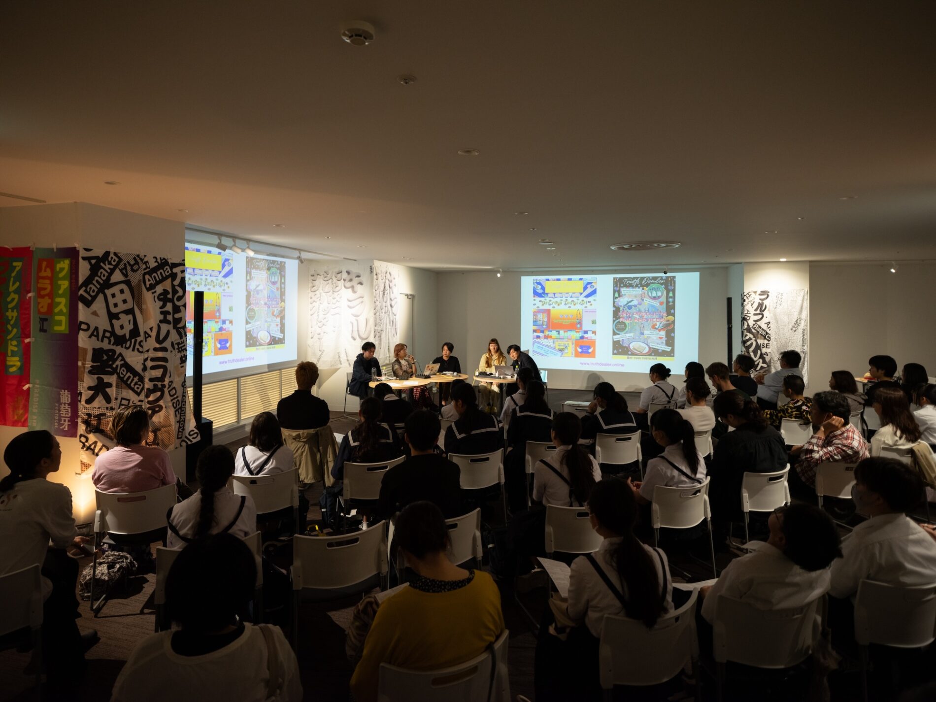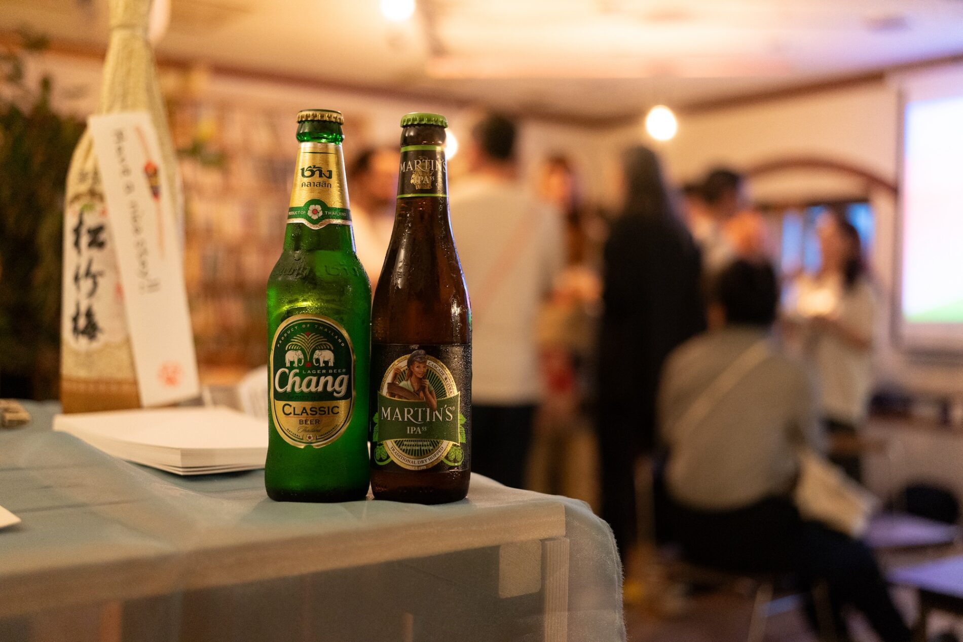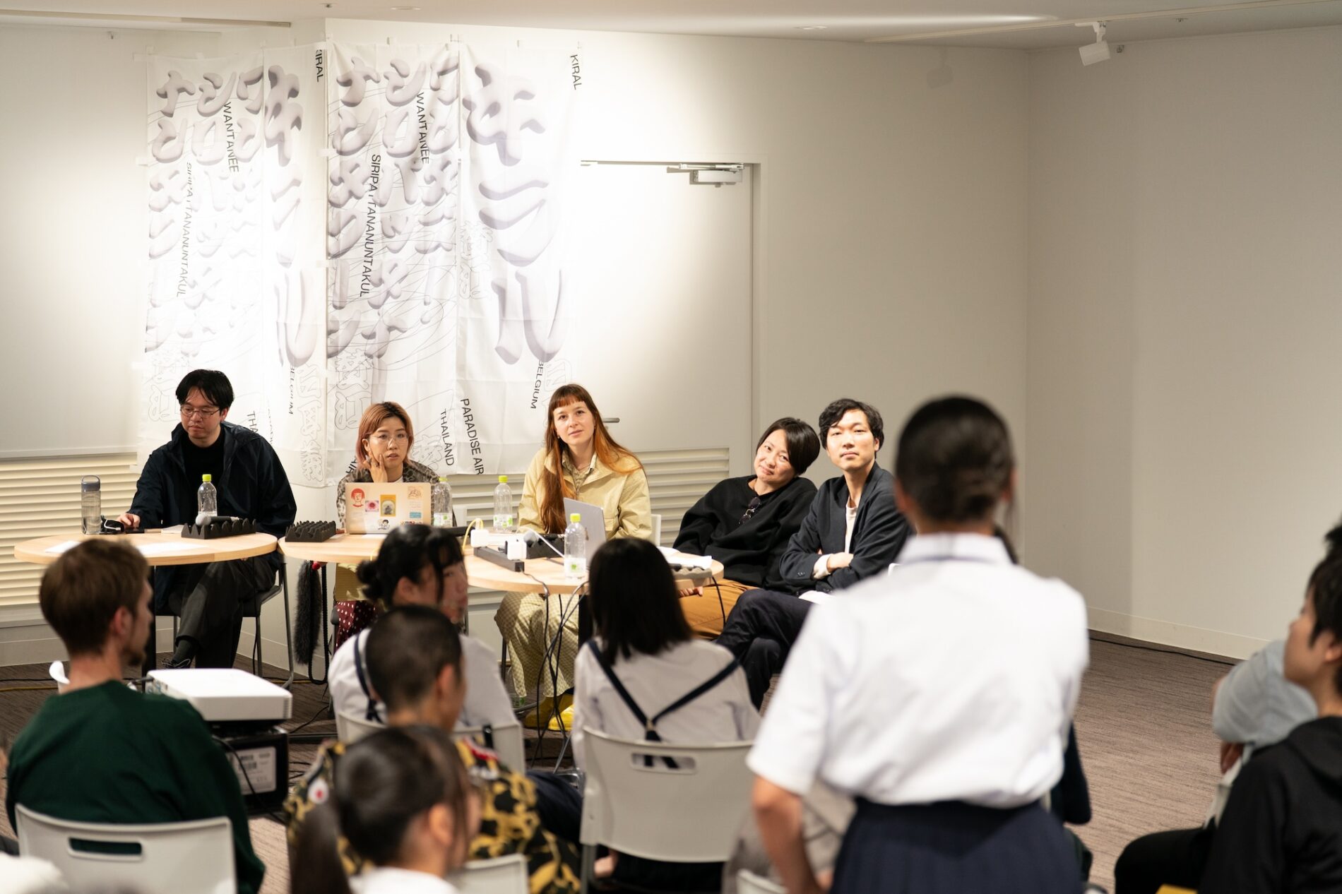 アーティスト二人の出身地にちなんで、食事はタイカレーとベルギーワッフルを、ビールはNINJA(日本)とChang(タイ)とMartin’s IPA(ベルギー)を用意しました。それぞれの故郷を感じられるフードとドリンクを囲んで、楽しく交流が行われました。ご来場いただいた皆様、ありがとうございました!